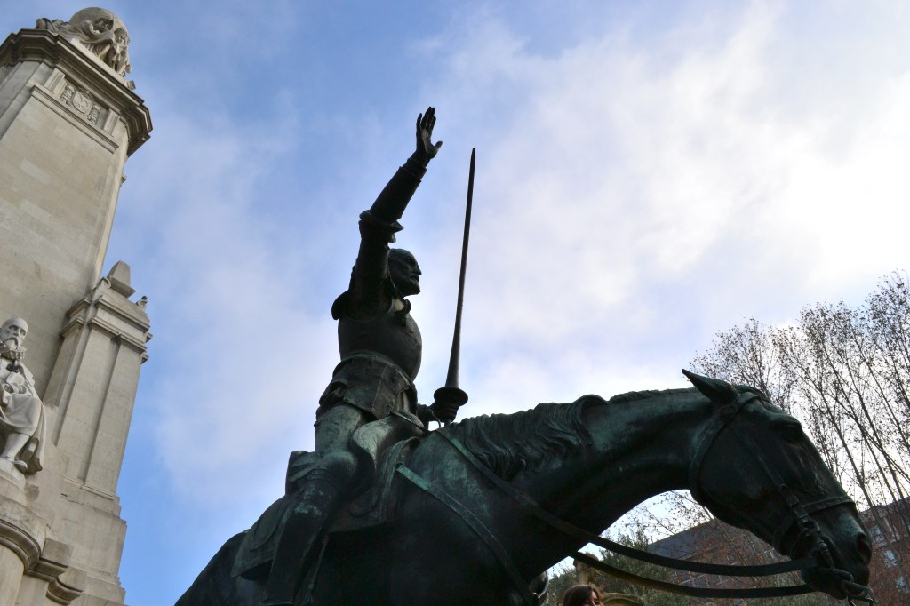 The statue has been in the Plaza España since 1929, and it is here that Palance and Nigel Patrick the thief coincide without realising it.