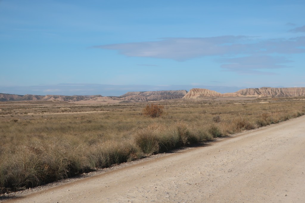 The area chosen was around the village of Aldealafuente. The cyclists (who seem to be heading for a cricket match) were 200 extras from the area, chosen for their Germanic physique (and providing their own bicycles) to cycle between Soria and Cidones.